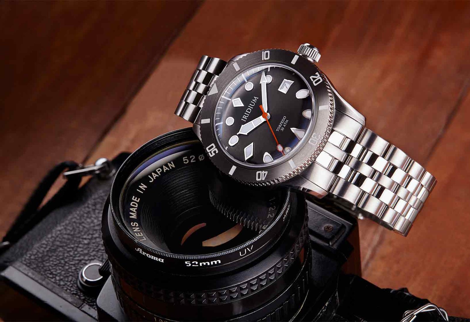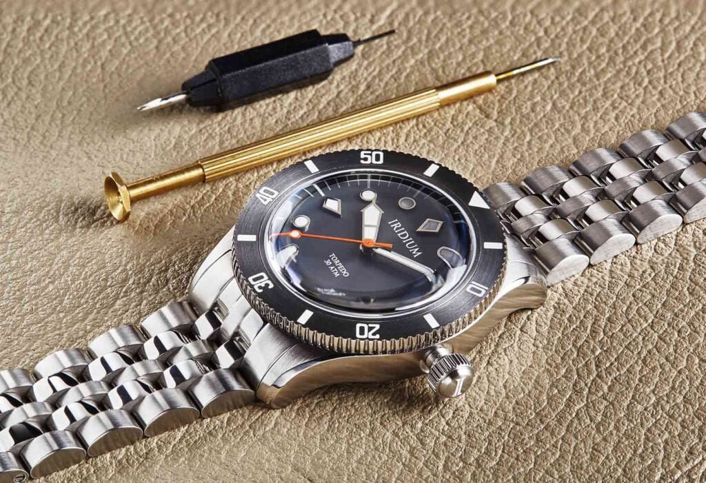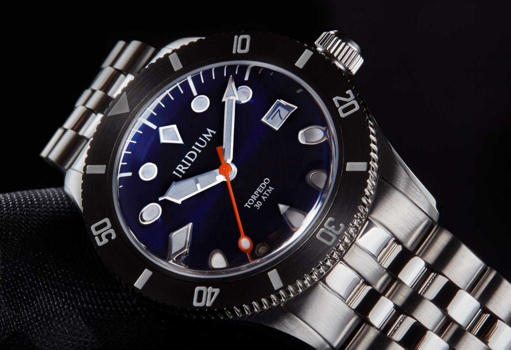 Unidirectional 120-click bezel on the Torpedo will be your faithful companion for all your timing activities. Actual depth diving or timing your microwave pizza, do it with the Iridium Torpedo and it’s fully lumed bezel markers (BGW9 Superluminova).